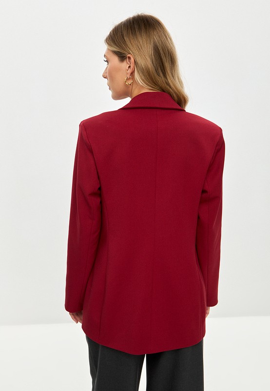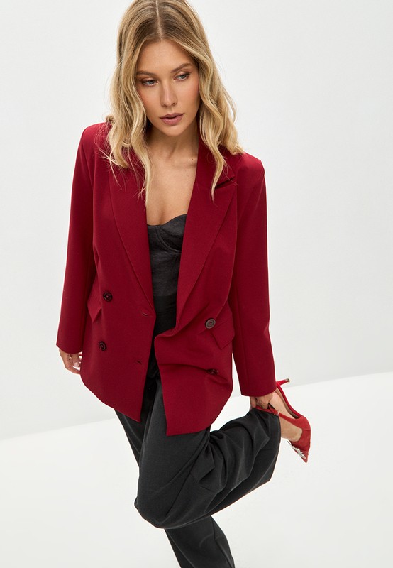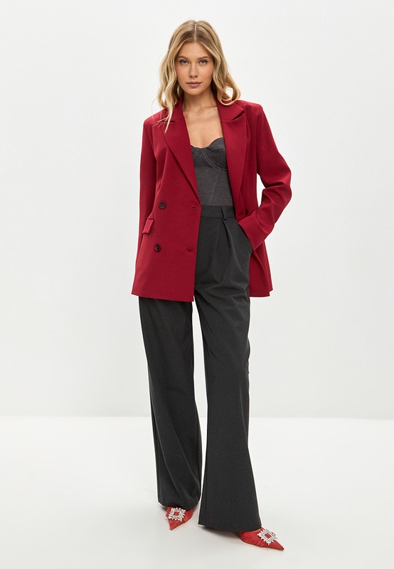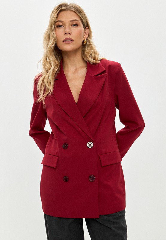 Двубортный пиджак из поливискозной костюмной ткани. Добавление искусственных волокон придает материалу долговечность и мягкость. Модель для повседневных образов - прямой крой, с классическими лацканами и карманами с клапанами.